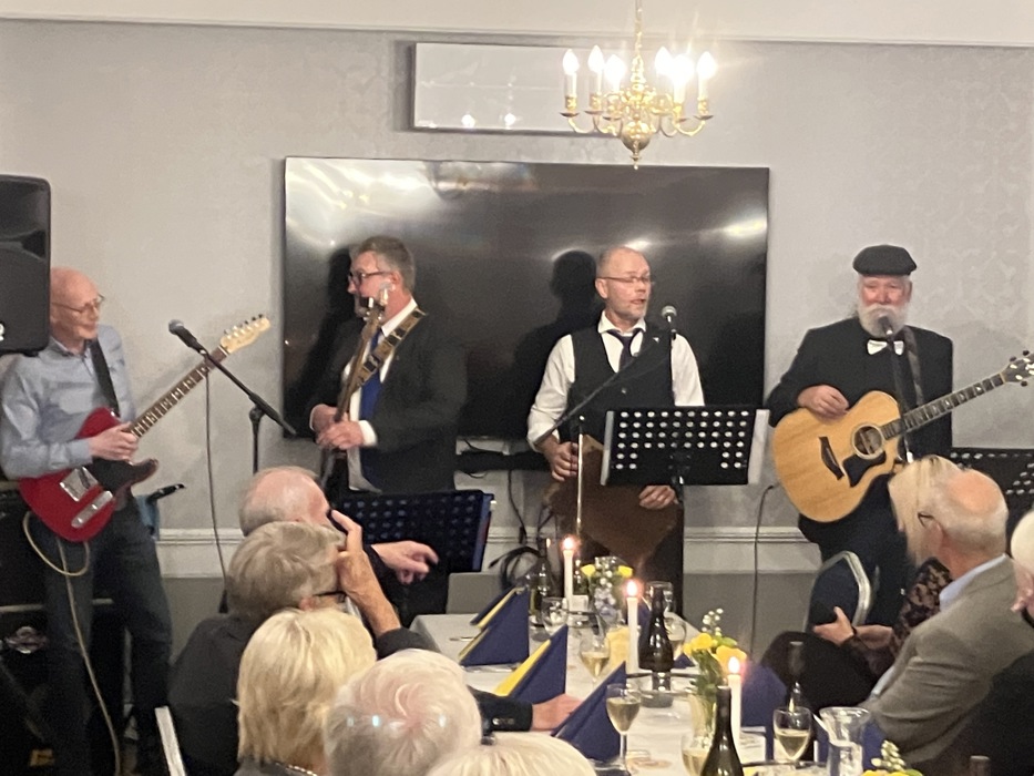 Så var det klart for de sosiale delene med havets delikatesser med dertil godt tilbehør i glassene. Det ble en særdeles hyggelig og trivelig kveld hvor bl.a. det lokale bandet TRULAUS stod for underholdningen og hvor to av bandet fire medlemmer er medlemmer i LC-Notodden.